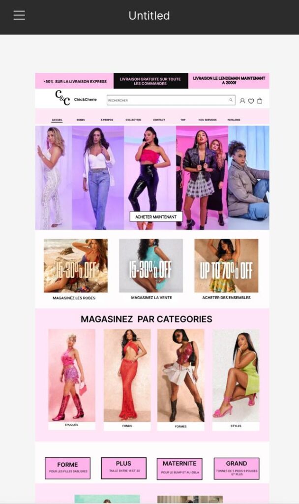 “Découvrez mon travail de designer UX/UI à travers Chic & Chérie, un projet e-commerce élégant réalisé sur Figma. J’ai conçu une interface moderne et intuitive, alliant une esthétique raffinée à une navigation fluide, afin d’offrir une expérience utilisateur premium. Chaque détail, des typographies aux palettes de couleurs, a été pensé pour refléter l’identité chic de la marque tout en répondant aux attentes des utilisateurs. Ce projet illustre ma maîtrise des outils de design et mon approche centrée sur l’utilisateur.”